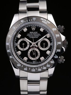 Rolex Daytona Stainless Steel Black Enameled Silver Dial