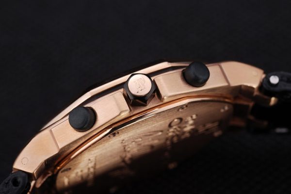 Back: Screwed down rose-gold plated stainless steel back with Royal Oak Offshore engraving