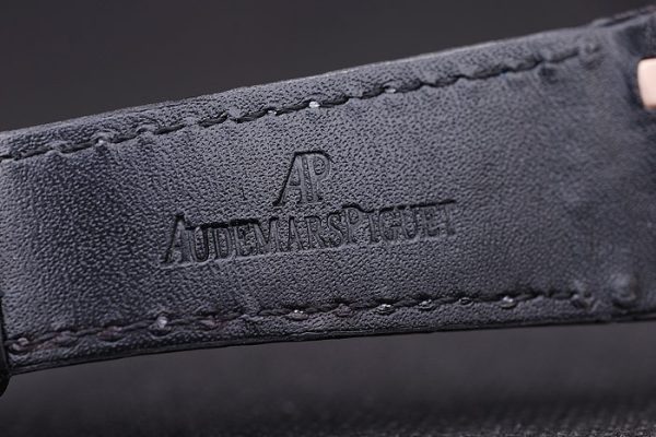 Back: 18k rose-plated screwed down back with a mechanics revealing transparent center and Royal Oak engraving Gender: Men Movement: Kinetic (Automatic) Quality: Japanese Miyota Color: Nero Case: 18k rose gold plated stainless steel case Bracelet: Black crocodile leather strap with white thread stitching and heat embossed Audemars Piguet name and logo and an Audemars Piguet inscribed rose-gold plated flip-over hook clasp Bracelet Length: 240 x 25 mm Bezel: 18k rose-gold plated crystal studded screwed down bezel Band Type: coccodrillo Diameter Skin: 47 x 39 mm Clasp Watch : Flip Clasp Glass: Sapphire Crystal Crown: 18k rose-gold plated cutwork crown with Audemars Piguet logo Case Thickness: 11 mm