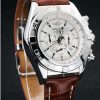 Back: Push in polished solid stainless steel back with Breitling engravings Gender: Men Movement: Quartz (Battery) Quality: Japanese Miyota Color: Marrone Case: Polished solid stainless steel case Bracelet: Breitling stamped brown leather strap with hook buckle lock Bracelet Length: 210 x 24 mm Bezel: Polished stainless steel round bezel with minutes marked in bold Band Type: Pelle Diameter: 59 x 47 mm Chronograph: Si Watch Clasp: Flip Clasp Glass: Sapphire Crystal Crown: Polished stainless steel crown main plus two additional crowns all intricately cut Case Thickness: 17 mm