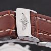 Back: Screw-back, Solid 440-grade stainless steel. Gender: Men Movement: Quartz (Battery) Quality: Japanese Miyota Color: Marrone Case: Solid forged case construction, 440-grade stainless steel. Bracelet: Warm mahogany colored high-grade leather in a crocodile pattern, with heavy white cotton stitching. Tan inner band is embossed with the Breitling name and logo, and has a steel buckle closure. Bracelet Length: 215 x 22 mm Bezel: Solid 440-grade stainless steel. Band Type: Pelle Diameter: 53 x 45 mm Chronograph: Si Watch Clasp: Flip Clasp Glass: Sapphire Crystal Crown: One piece solid screw-down crown. Case Thickness: 17 mm