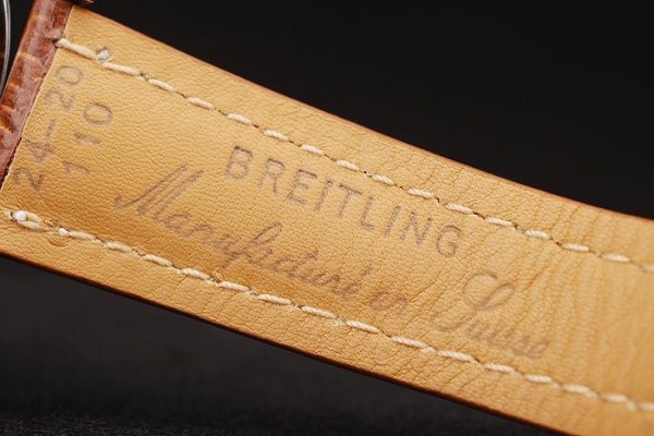 Back: Stainless steel snap-in back with Breitling inscription Gender: Men Movement: Quartz (Battery) Quality: Japanese Miyota Color: Marrone Case: Polished stainless steel case Bracelet: Heat embossed Breitling brown crocodile leather strap with white thread stitching and a Breitling logo engraved fold-in stainless clasp Bracelet steel Length: 210 x 24 mm Bezel: 18k rose-gold plated bezel Band Type: coccodrillo Diameter Skin: 55 x 45 mm Watch Clasp: Flip Clasp Crown: Bell & Ross logo engraved polished stainless steel cutwork crown with two small round push-button crowns on either side of it Case Thickness: 15 mm