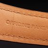 Bracelet: Light brown leather strap with heat embossed Officine Panerai Italy stamp and brushed stainless steel hook -buckle clasp with Panerai engraving