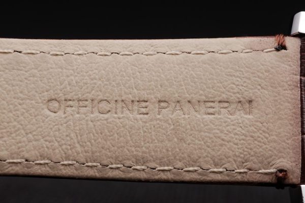 Back: Stainless steel rimmed transparent snap-in back with Panerai engraving Gender: Men Movement: Kinetic (Automatic) Quality: Japanese Miyota Color: Marrone Case: Polished stainless steel case Bracelet: Brown leather strap with white stitching and heat embossed Officine Panerai Italy stamp and polished stainless steel hook-buckle clasp with Panerai engraving Bracelet Length: 217 x 24 mm Bezel: Polished stainless steel bezel Band Type: Pelle Diameter: 55 x 45 mm Watch clasp: Buckle Glass: Sapphire Crystal Crown: Polished stainless steel cutwork crown enclosed Within an arched protection Case Thickness: 15 mm