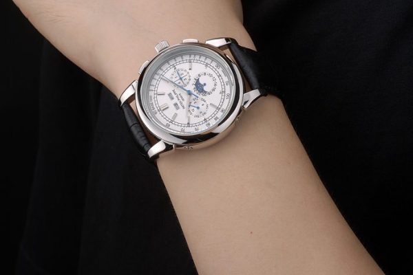 Back: Stainless steel rimmed transparent snap-in back with Patek Philippe Geneve inscriptionMovement: Kinetic (Automatic) Quality: Japanese Miyota Color: Nero Case: Polished stainless steel case Bracelet: Black crocodile leather strap with heat embossed Patek Philippe stamp and polished stainless steel hook-buckle clasp with Patek Philippe engraving Bracelet Length: 210 x 22 mm Bezel: Polished stainless steel bezel Band Type: Pelle Diameter: 53 x 42 mm Watch Clasp: Buckle Glass: Sapphire Crystal Crown: Polished stainless steel cutwork crown with Patek Philippe logo and rectangular push button crowns on either side of it Case Thickness: 14 mm