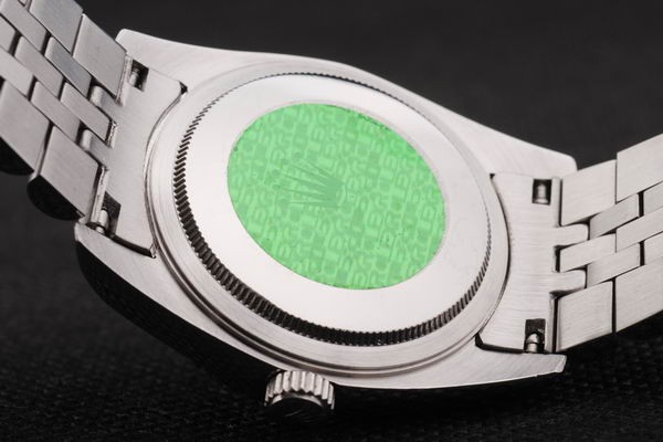 Back: Push in stainless steel back with green Rolex sticker and markings
