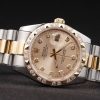Bezel: Diamond studded 18k yellow gold bezel with black arrowheads marking the hours