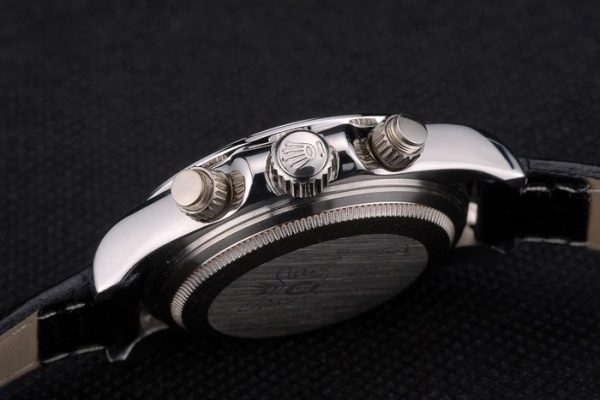 Crown: Polished stainless steel cutwork crown with Rolex logo and two smaller cutwork push button crowns on either side of it