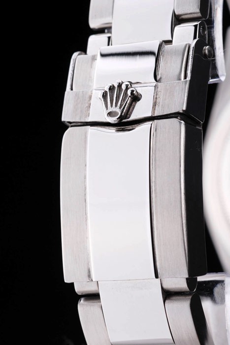 Crown: Polished stainless steel cutwork crown with Rolex logo and two additional crowns on either side of it
