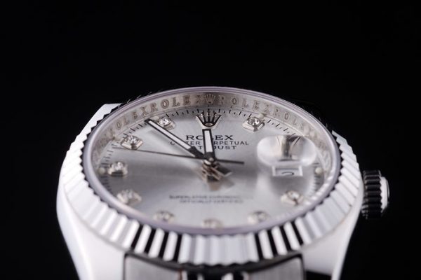 Crown: Polished stainless steel cutwork crown with Rolex logo engraving