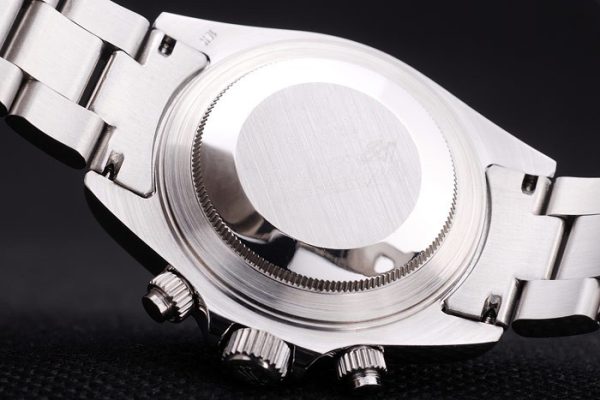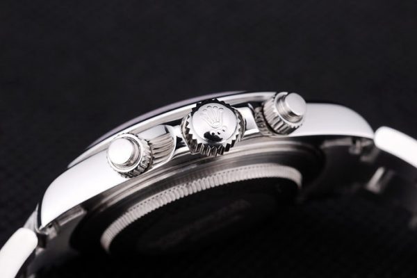 Back: Polished stainless steel snap-in back with Rolex inscription Gender: Men Movement: Kinetic (Automatic) Quality: Japanese Miyota Color: Argento Case: Polished stainless steel case Bracelet: Polished stainless steel link bracelet with Rolex logo deployment clasp Bracelet Length: 195 x 20 mm Bezel: Polished stainless steel bezel with units per hour marker Band Type: Steel inossidabile Diameter: 48 x 39 mm Watch Clasp: Security Clasp Crown: Polished stainless steel cutwork crown with Rolex logo and two smaller cutwork push-button crowns on either side of it Case Thickness: 13 mm