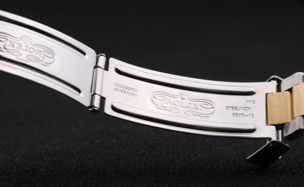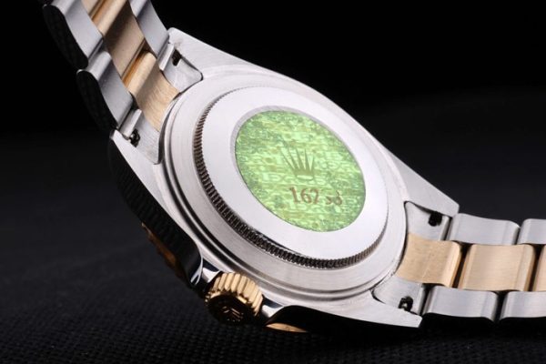 Back: Stainless steel push-in case back with green Rolex engraving stamp Gender: Men Movement: Kinetic (Automatic) Quality: Japanese Miyota Case: Brushed stainless steel case Bracelet: Two toned brushed and gold tone stainless steel link bracelet with Rolex engraving fold in clasp displaying the Rolex logo Bracelet Length: 193 x 20 mm Bezel: Gold-tone cutwork bezel with luminous blue enameled minutes marked top Band Type: Steel inossidabile Diameter: 47 x 42 mm Watch Clasp: Security Clasp Glass: Sapphire Crystal Crown: 18k yellow gold plated steel cutwork crown with Rolex logo Case Thickness : 13 mm