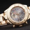 Bezel: Rose gold plated unidirectional cutwork bezel with 1 to 10 markings and Yacht Master engraving