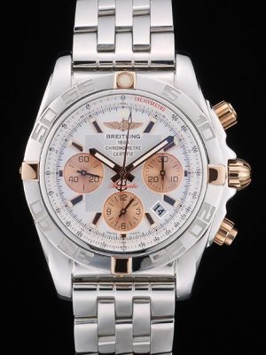 Breitling Certified Polished Silver Stainless Steel Strap Beige Dial Chronograph 80174